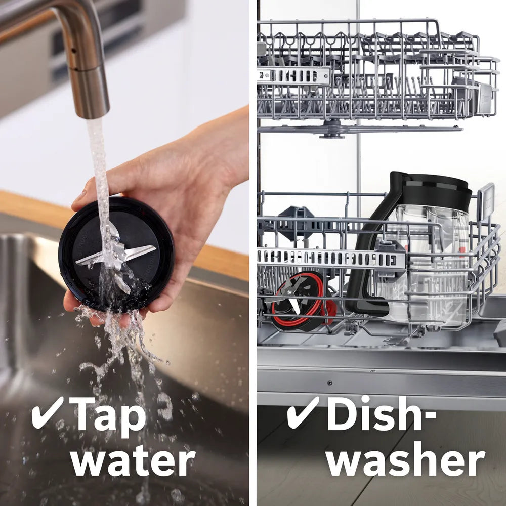 • Bol en verre de 1,5 L et lames en acier inoxydable – durable et facile à nettoyer.